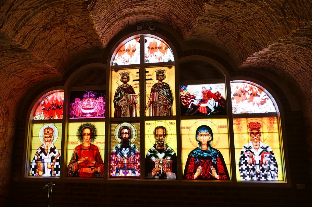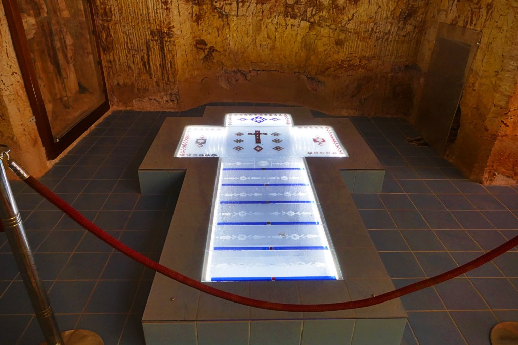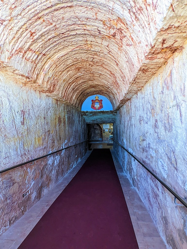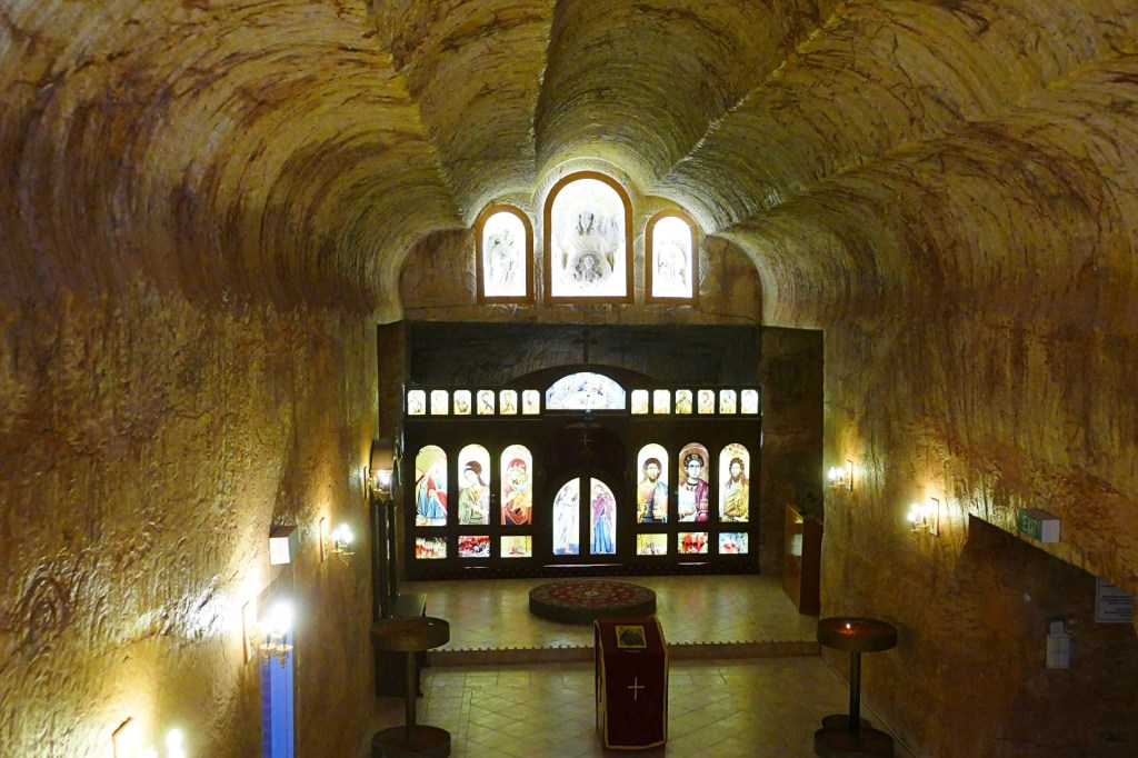 Coober Pedy is known for underground houses. They were built originally to protect from the heat, now there are still people living in underground houses, obviously some underground tourist buildings. We visited an underground Serbian Orthodox Church, St Elijah. It was very interesting with beautiful stained glass, however it was right next door to a working Opal Mine.