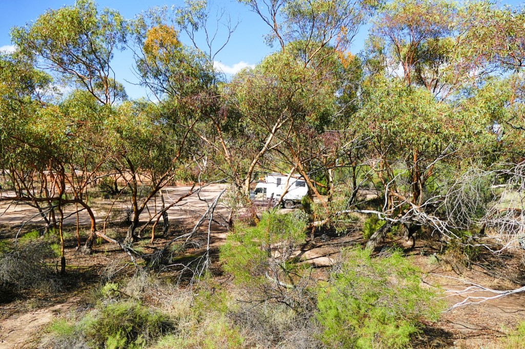 We stopped for lunch along the way, unfortunately we did not close one of our windows properly, and it was ripped off along the way to Emu, we did not discover the problem till we got to Emu, and then had to travel back 25km to retrieve the window. We were able to put it back so that it locked, but the struts to hold it open were broken. The struts could be replaced, but we double and triple checked all windows and hatches after that. This meant of course that we had waisted 50km worth of fuel, and when you are in a situation where the nearest fuel was 500km away, this could be an issue. The worst parts of the road for us were the ones that were overgrown with shrubs and trees. They would get caught in any part of the truck that had a crevasse, like the awning and the roof rack. We had to be very careful with the awning, branches would get wedged between the truck and the awning and without care, would rip it off. I was on awning watch duty every time we went through one of these parts of the road. We did manage to not rip it off.