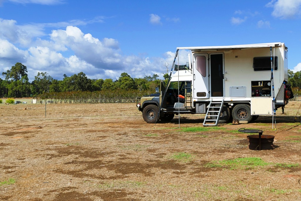 The camp area is great. The only issue being that the ground is not very level, but workable. we are right near the orchard with 2 flushing toilets nearby and access to drinking water for $20 per night. This is great so close to Perth. We will be staying here for as long as we need to, so we can do what we need to do on the truck. We will also be catching up with our friends Suzanne and Dave in early May. We will be adding to this as we go. Our other friends Deb and Greg are out of town at the moment so we will have to catch up with them later.