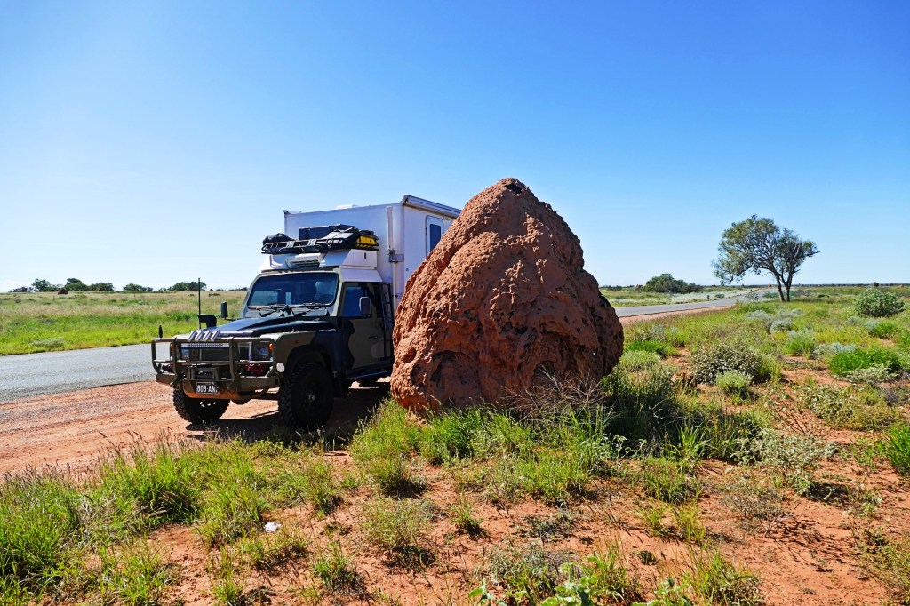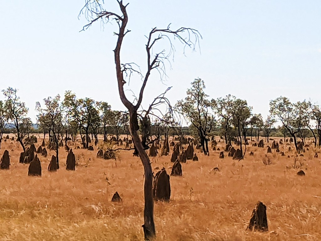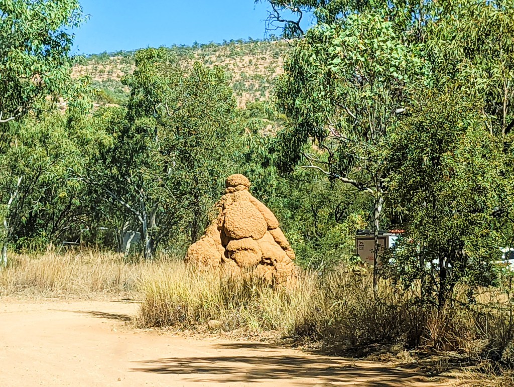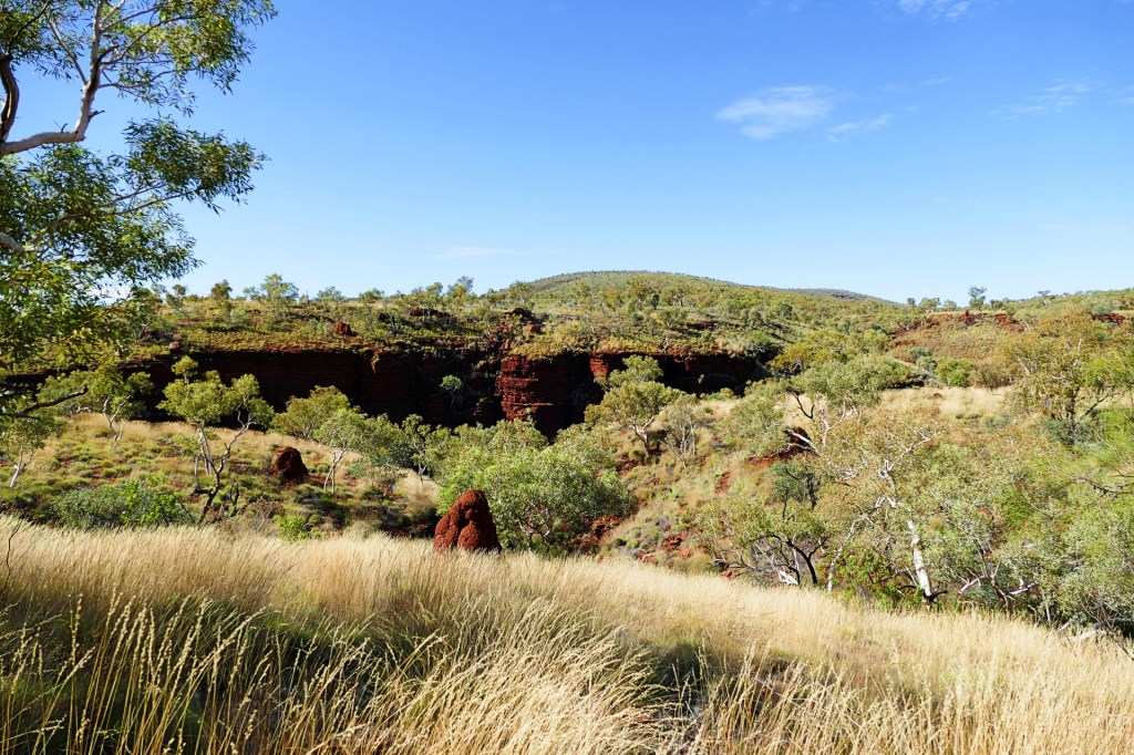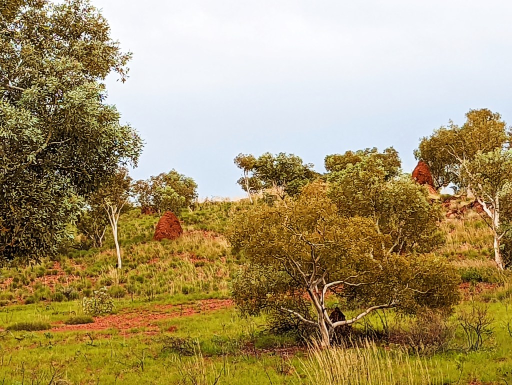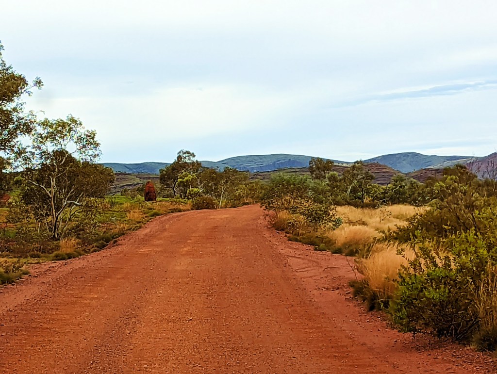 We continued to see the large yellow termite mounds until we reached the Pilbara, then the landscape changed dramatically as we approached, from flat and sandy to rocky and red, the termite mounds were also red.