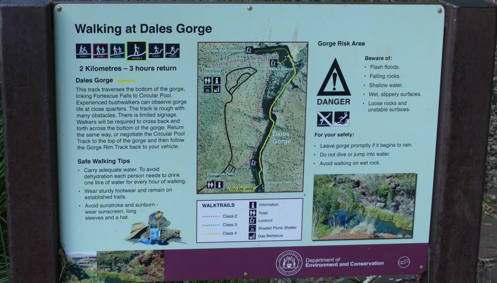 We also had time to do the Dale Gorge and Clifftop Walk. The Dale Gorge walk is a class 4 bush walk, Class 5 is the most difficult. Circular Pool, which was at the end of the Dale Gorge walk had been closed due to a rock fall, so we could not go there, which was disappointing.