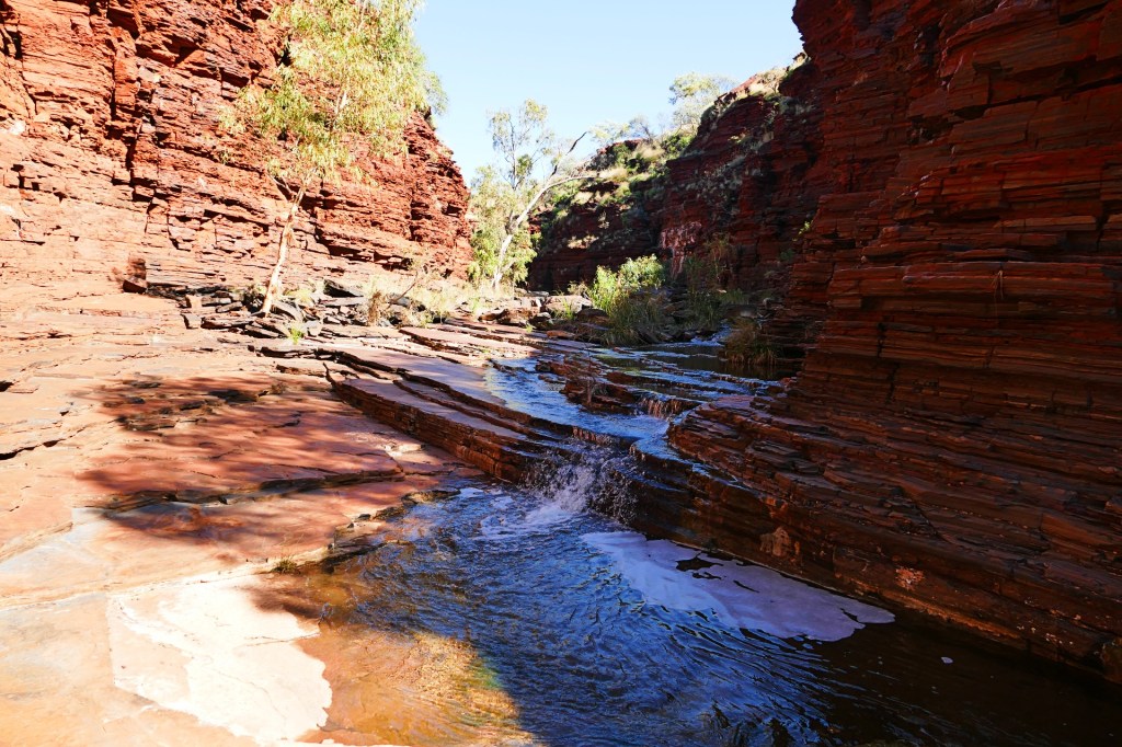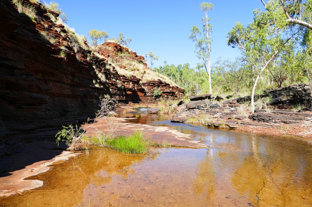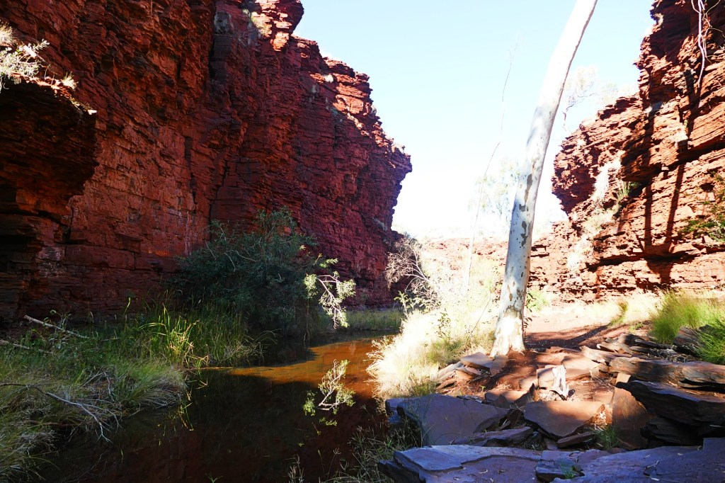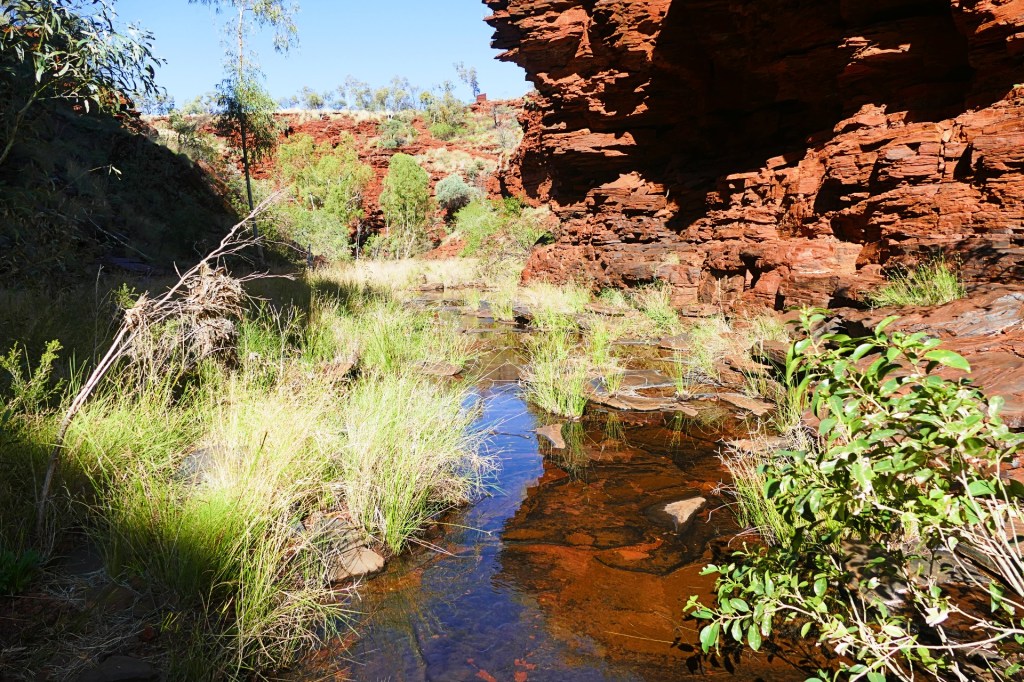 Today is our last day in Karajini, we have thoroughly enjoyed our time here, we 2 gorges to walk today, the first is Kalamina Gorge, which also has a waterfall. Kalamina Gorge is a class 4 walk, it is 3km long and should take about 3 hours return.