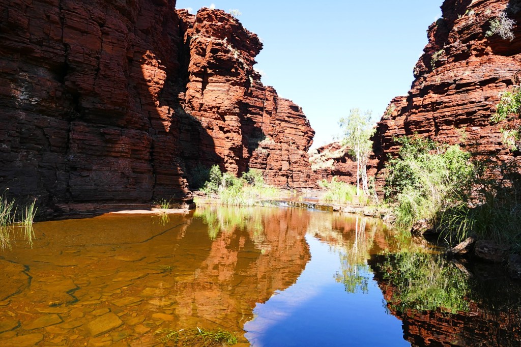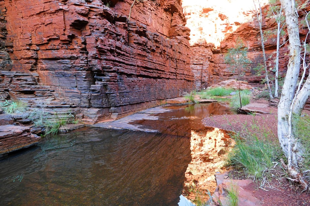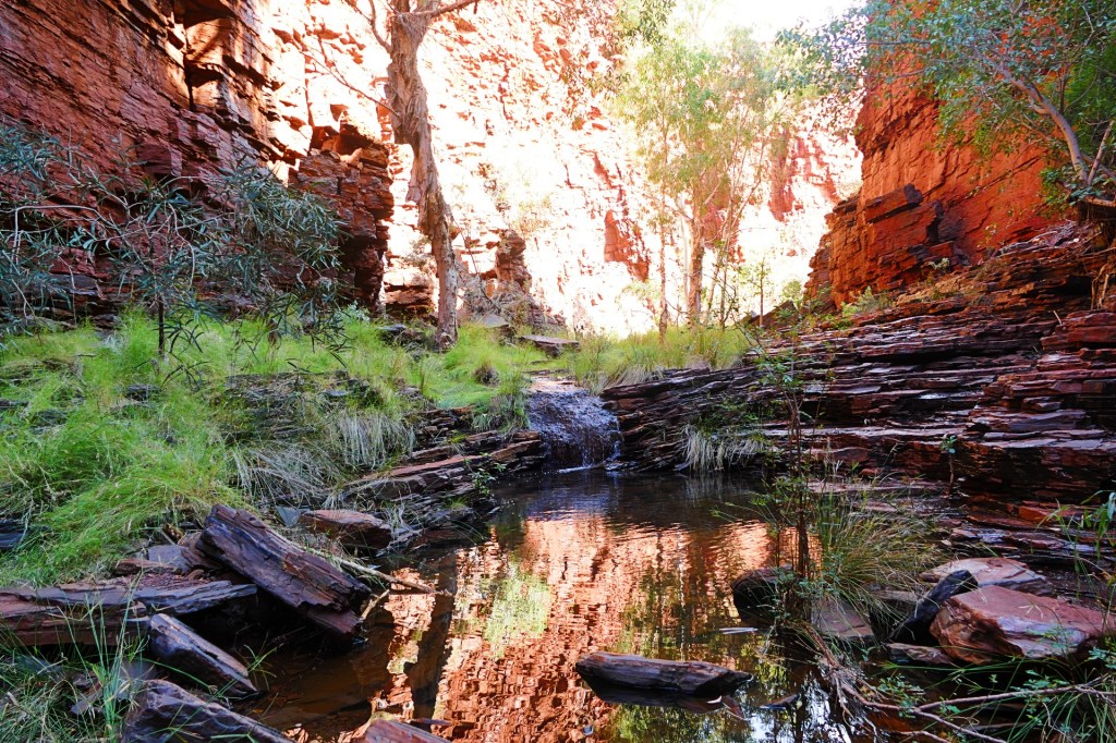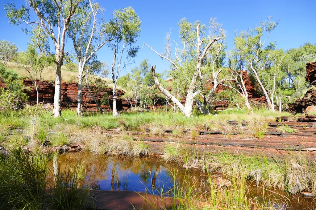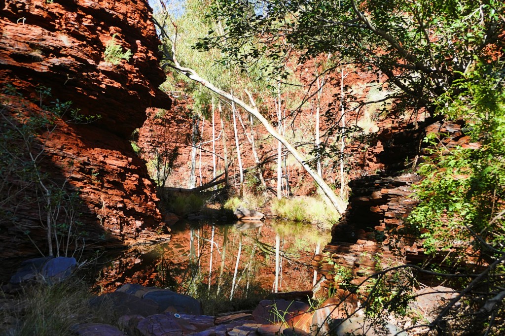 Today is our last day in Karajini, we have thoroughly enjoyed our time here, we 2 gorges to walk today, the first is Kalamina Gorge, which also has a waterfall. Kalamina Gorge is a class 4 walk, it is 3km long and should take about 3 hours return.