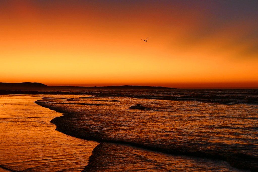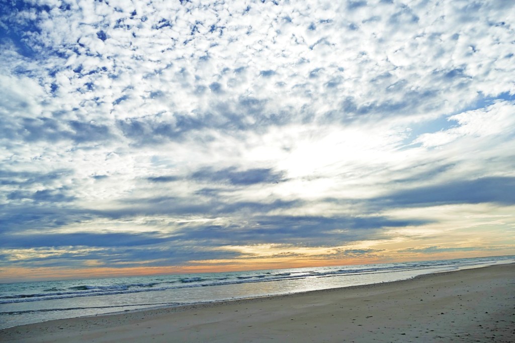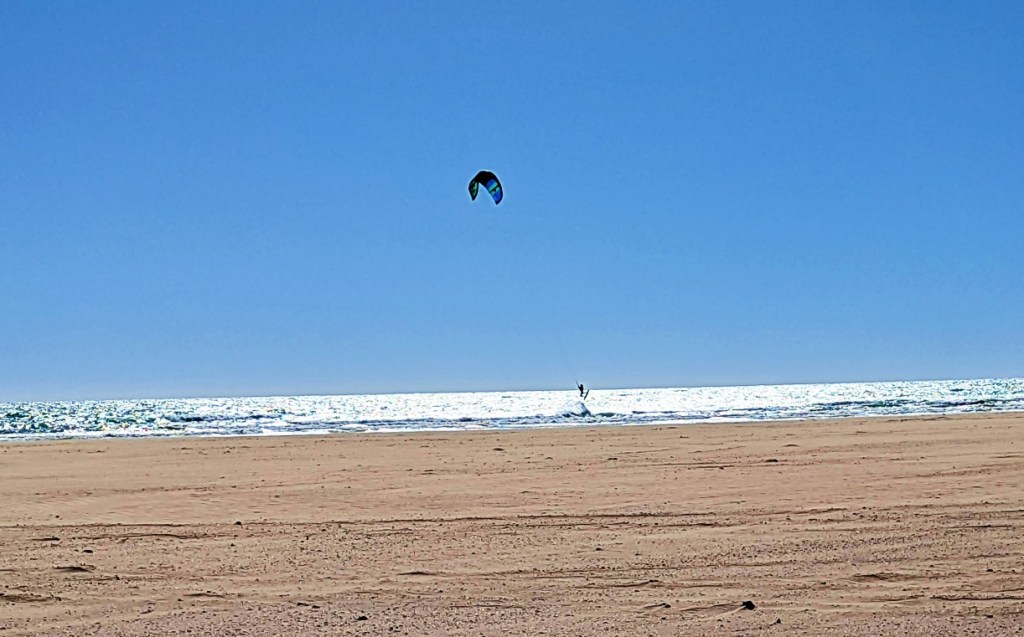 We woke to a sunny but very windy day. The tide was in, a kite surfer was doing his thing. The winds eased by afternoon and were non existence by evening, some clouds had appeared, which gave an even more beautiful sunset.