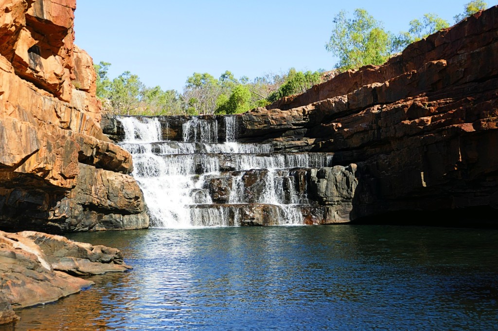 We walked the Manning Gorge trail, it was an extremely challenging walk, It was 4 km return, took about 2 hours each way, the day was very hot, you had to swim across the river to start the walk and there were lots of rocks to climb up, around and down. the falls at the end of the rail were really pretty and worth the challenging walk.