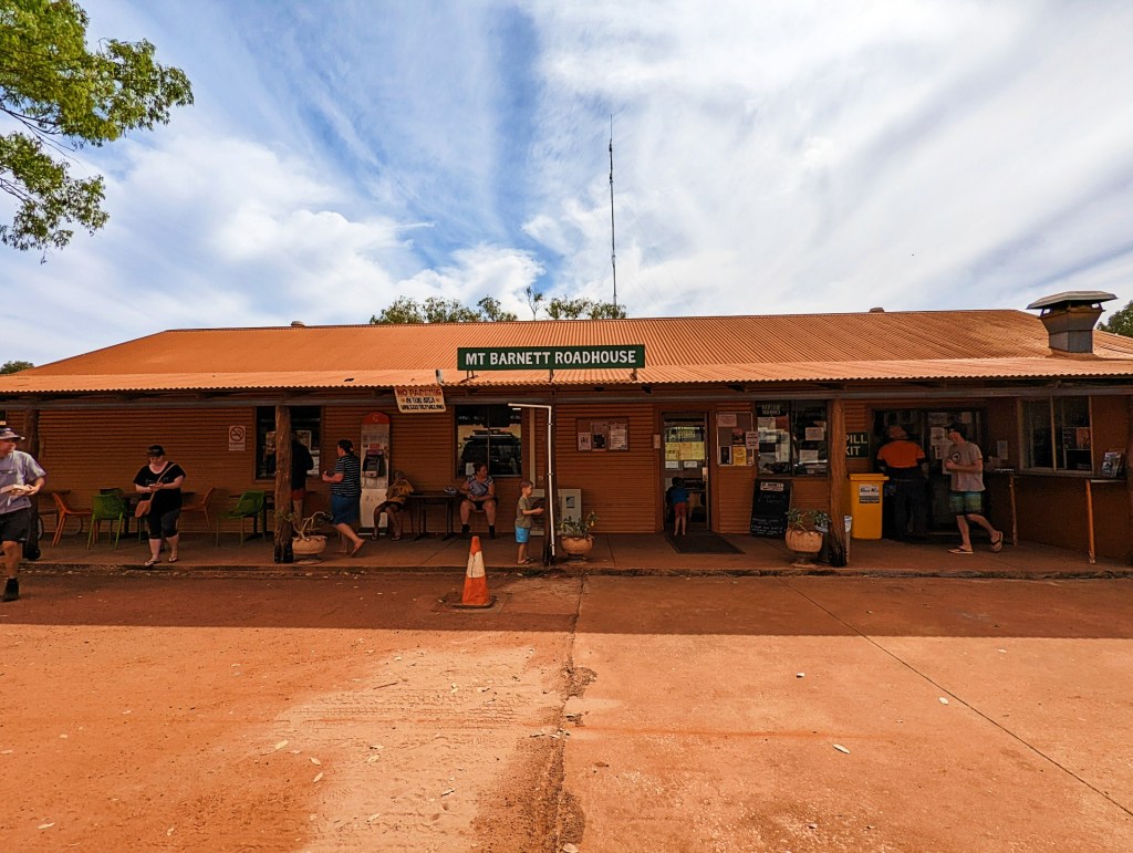 On Friday the 24th June, we left for Manning Gorge, we stopped by Mt Barnett Roadhouse for a Hamburger at lunch time. It was a great hamburger. Mt Barnett sells great hamburgers and other food, and it also has basic staples for sale.