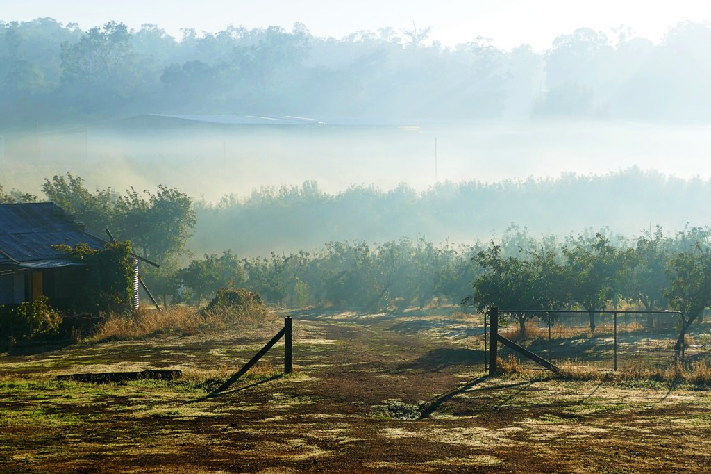 We are still at Carmel Cider and woke this morning to find a mist over the orchard, I took this photo and thought I would share it.
