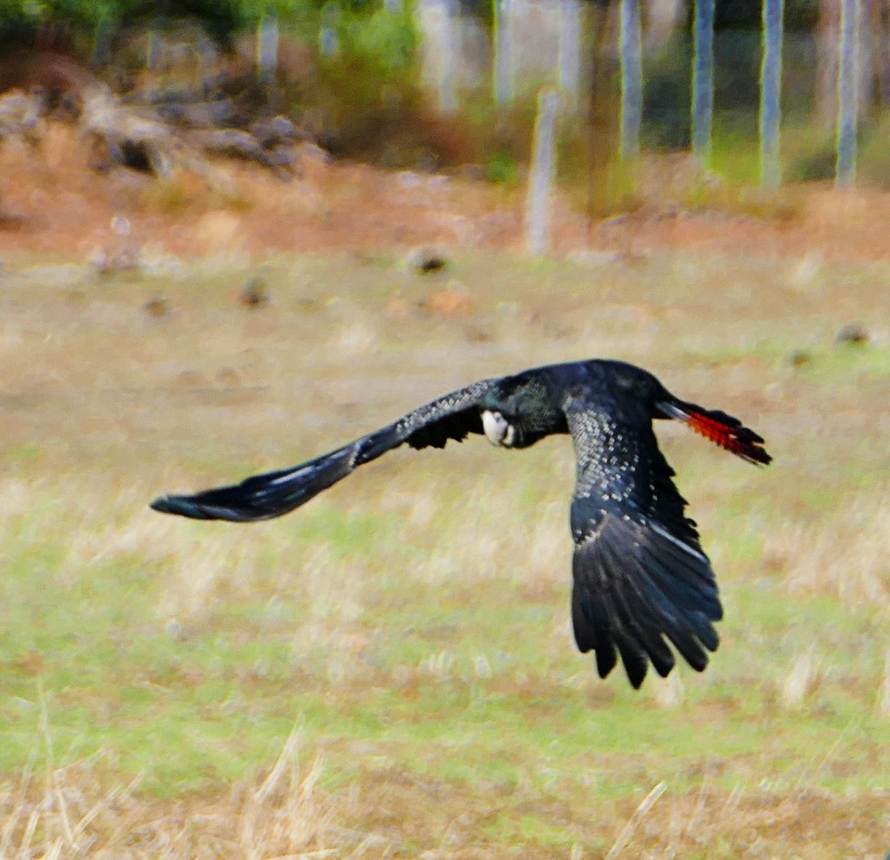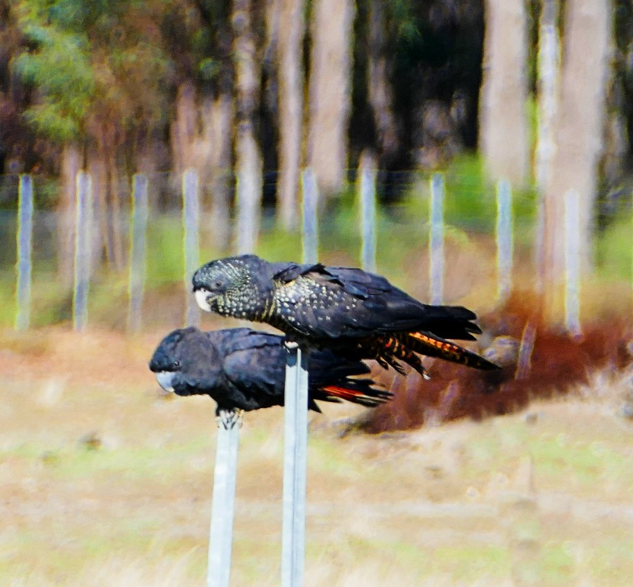 Today I finally was able to take some photo’s of the red tailed black cockatoos, they had been flying overhead the whole time we have been here, but never rested long enough for me to take photo’s, except for today of course.