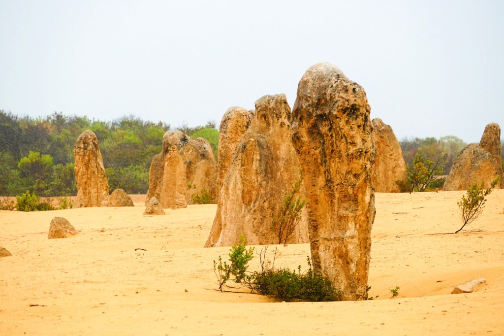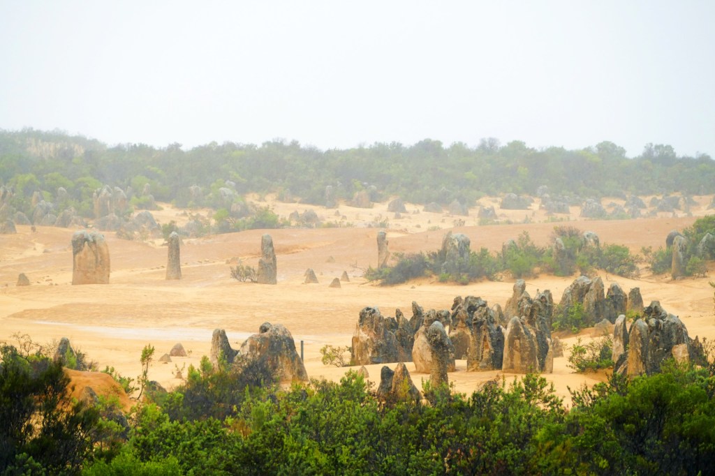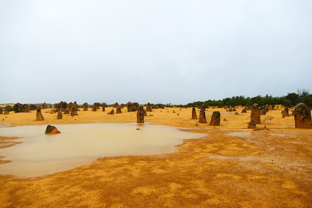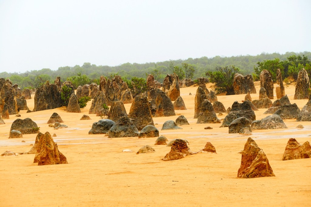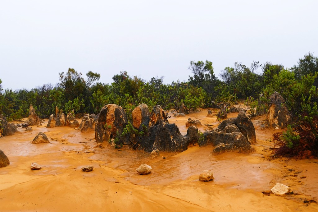Just up the road from Wanagarren, is the Pinacles Desert. This is well worth the visit and the $15 entry fee even though it was constantly raining. The landscape is amazing, hundreds of limestone pillars, saffron yellow sand, it looked like an alien landscape.