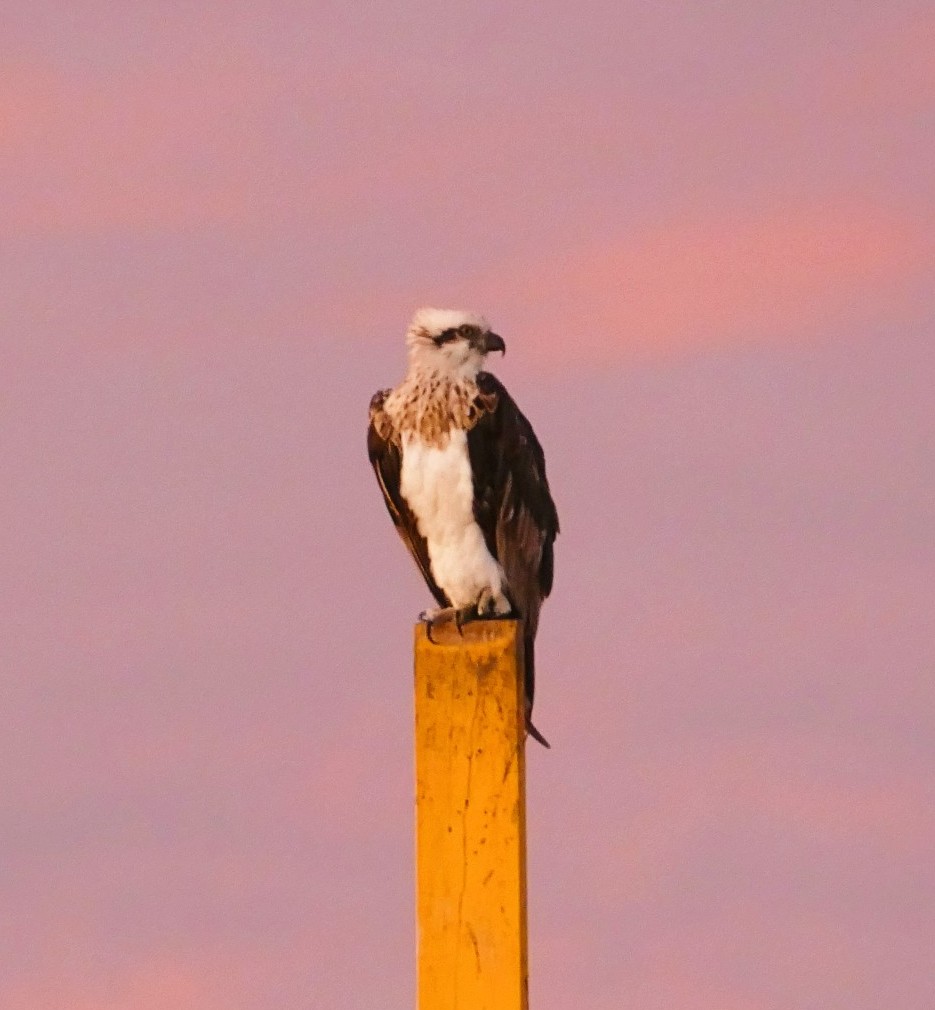 Another beautiful day even with a fair bit of cloud around, and I woke in time for a gorgeous pink sky sunrise. Our resident Eastern Osprey were there on their poles when I awoke and for most of the day, the male even caught a fish and proceeded to eat it over an hour and a half, then he went back to the ocean and caught another one.