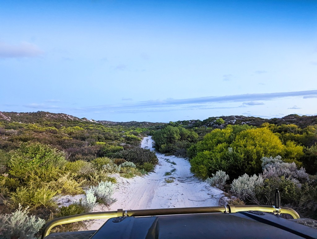 We booked our campsite at Wanagarren Campsite, about 40 km up from Lancelin. It is a national park with 15 remote campsites catering only for 4 wheel drive vehicles with high clearance. No caravans or trailers are allowed because the road to each of these campsites is very challenging, caravans or trailers would not make it.