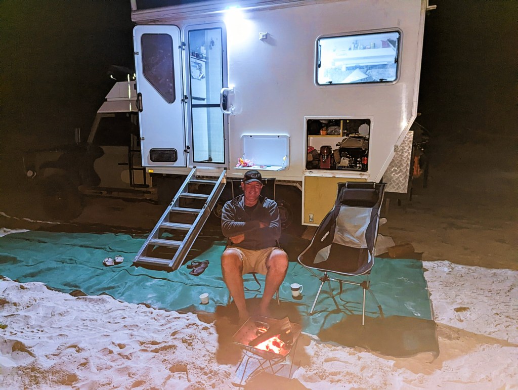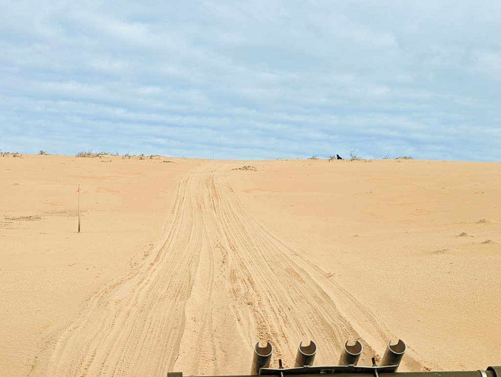 The road in was definitely challenging with deep sand and sand washed away, but the campsite is paradise. Absolute beachfront, with our own private beach, sand dunes all around us. We liked it so much we decided to booked the next night as well.