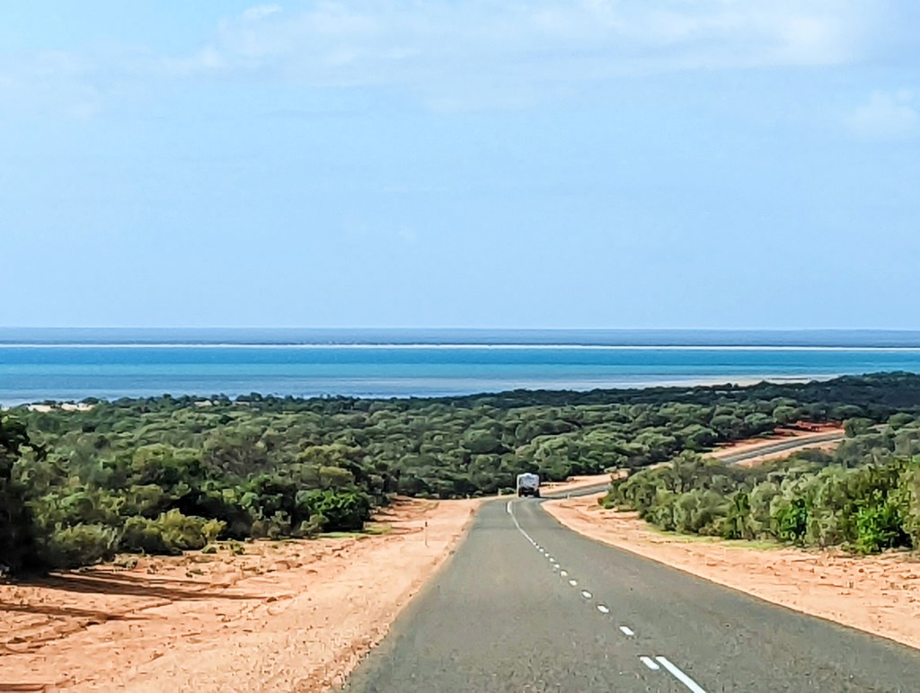 We were driving to Exmouth today, the day was cloudy, windy and very rainy, good day to leave. We had booked a caravan park in Exmouth.