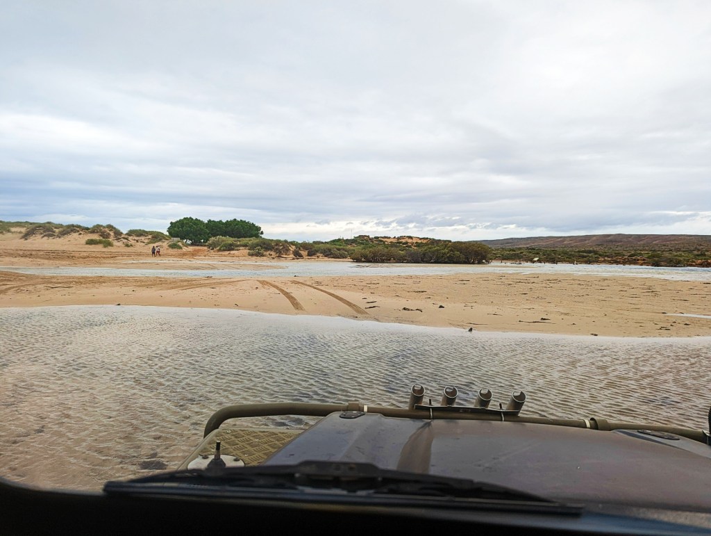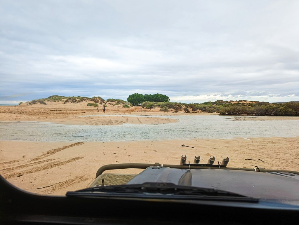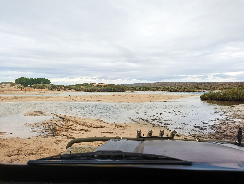 To get to Exmouth, we had to cross Yardie Creek, which was a tidal salt water creek. Low tide was at 4:00 pm, we had to wait till the tide was low so we would not have to drive through too much salt water. We got there early and then chilled till we could get across.